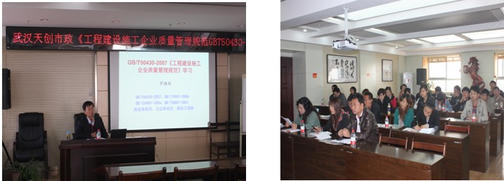 天創(chuàng)公司于2011年11月17日,在閩東國際26樓大會議室,邀請北京大陸航星體系認證有限公司的高級審核員羅煥祥老師,對我公司進行了《工程建設(shè)施工企業(yè)質(zhì)量管理規(guī)范》GB/T50430相關(guān)知識的專題培訓。