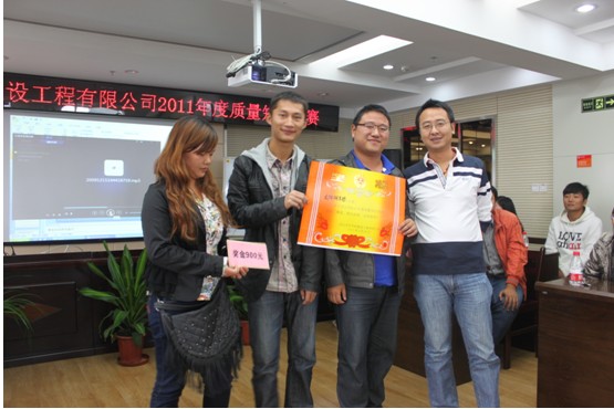 2011年9月20日上午8點半鐘,天創(chuàng)公司2011年度質(zhì)量知識競賽在緊張而又活躍的氣氛中拉開了帷幕。參加此次競賽的選手均來自施工一線的技術人員,由龍陽湖東路項目部、二環(huán)線水東路項目部、什湖大道項目部、京漢大道項目部等八個項目部組成了8支代表隊參賽。賽前,他們進行了認真的學習和復習,積極備賽,賽場上他們表現(xiàn)踴躍、氣氛熱烈。經(jīng)過個人必答題、個人選答題、團隊選答題、風險題等環(huán)節(jié)的激烈角逐,什湖大道代表隊技壓群雄,一舉奪冠,顯示了較高的質(zhì)量知識水平。