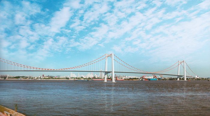 武漢市的第八座長(zhǎng)江大橋,世界首座主纜連續(xù)的三塔四跨懸索橋;世界同類橋梁中跨度最大的三塔四跨懸索橋。獲得中國(guó)建設(shè)工程魯班獎(jiǎng)、全國(guó)市政金杯示范工程。