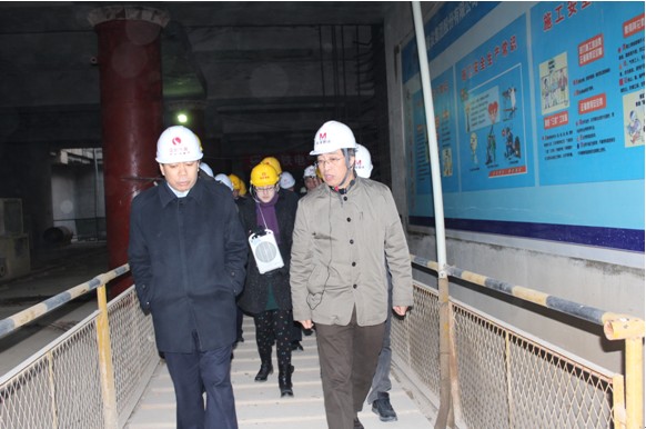 隨后,徐憲平一行深入到地下負(fù)二層,親臨地鐵施工現(xiàn)場(chǎng),參觀地下隧道施工以及維護(hù)結(jié)構(gòu),見(jiàn)證洪山廣場(chǎng)站的施工過(guò)程。隨行人員向其簡(jiǎn)要介紹了隧道施工情況。他指出,在軌道交通建設(shè)中,要堅(jiān)持科學(xué)規(guī)劃、有序建設(shè),確保安全第一。