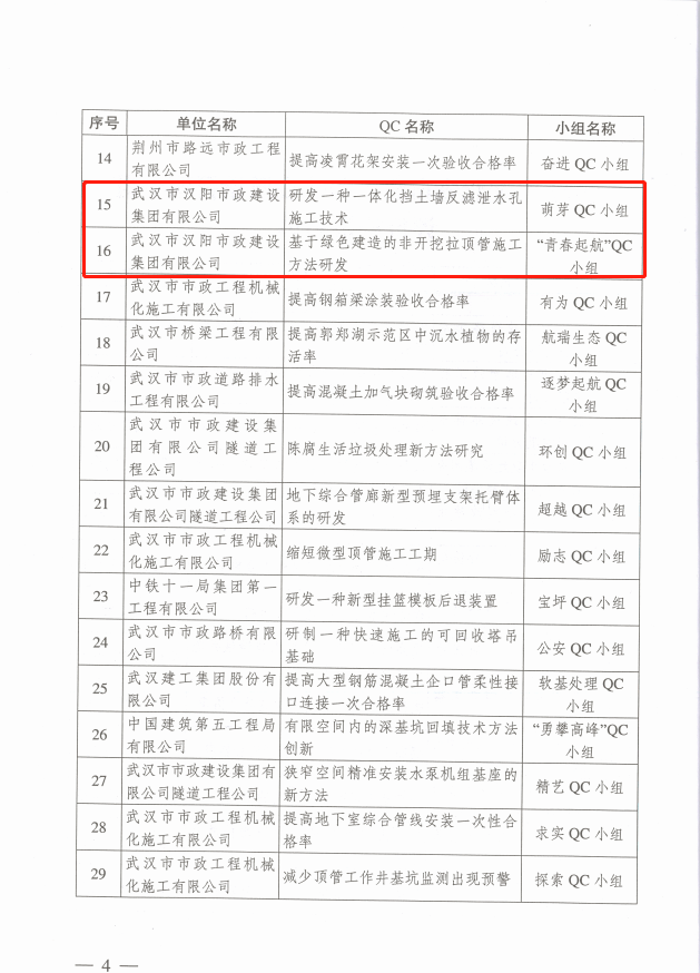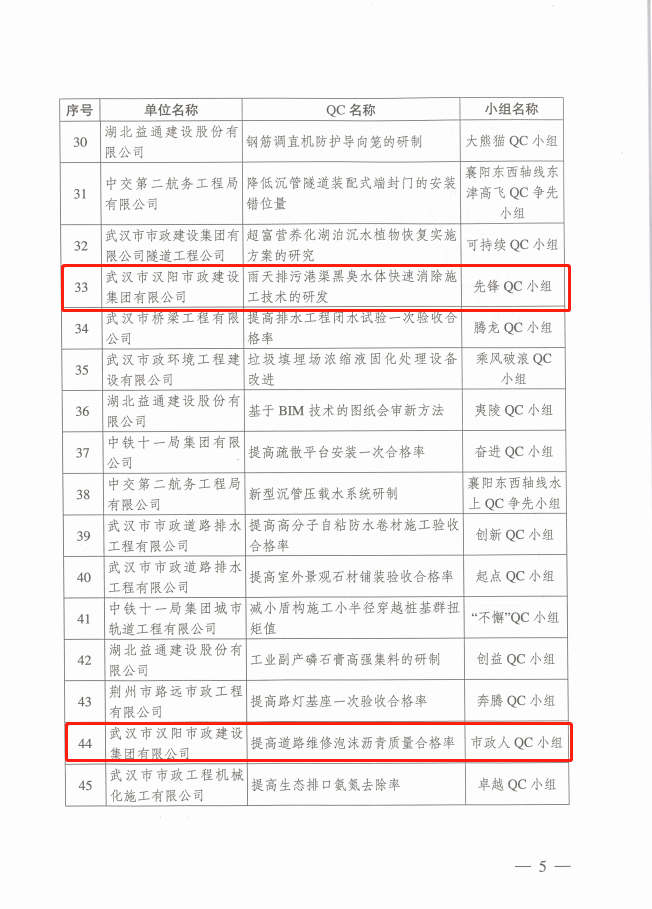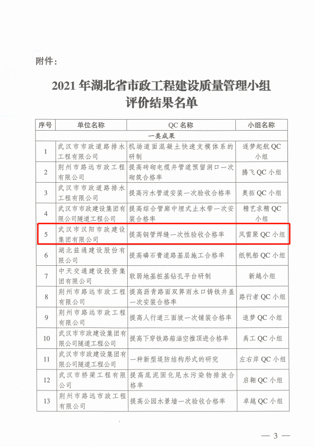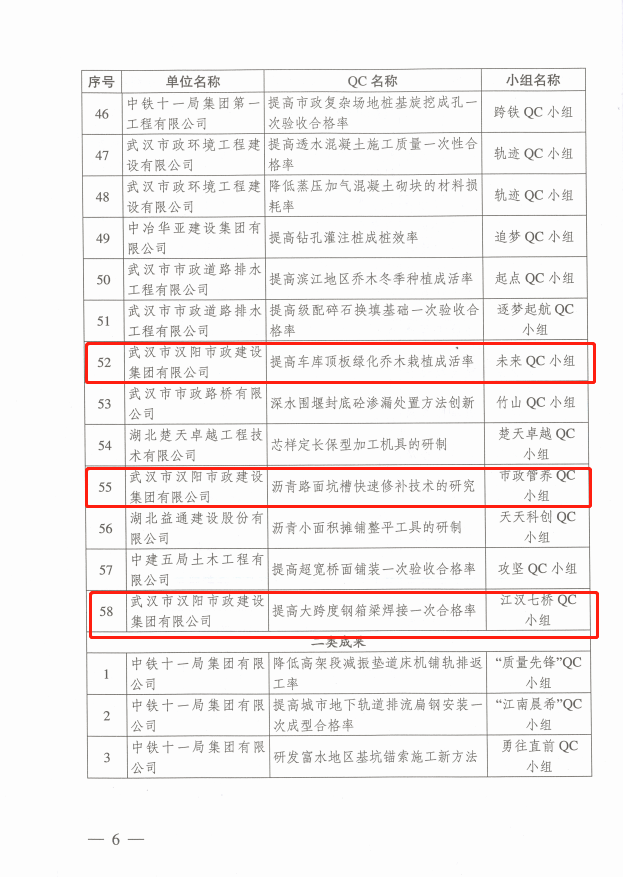 近期,湖北省市政工程協(xié)會(huì)傳來(lái)捷報(bào),漢陽(yáng)市政選送的QC成果在激烈的角逐中脫穎而出,喜獲QC成果一等獎(jiǎng)8項(xiàng)、二等獎(jiǎng)18項(xiàng)、三等獎(jiǎng)6項(xiàng)。