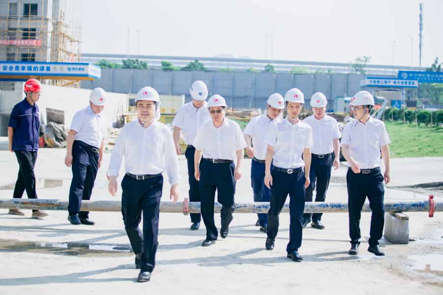 ? ? ? 漢陽市政董事長嚴悌文一行走進項目現場,參觀了工程實體質量、現場安全文明布置情況,并詳細了解了項目后期的施工進度計劃安排。