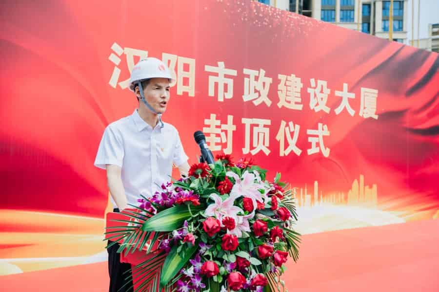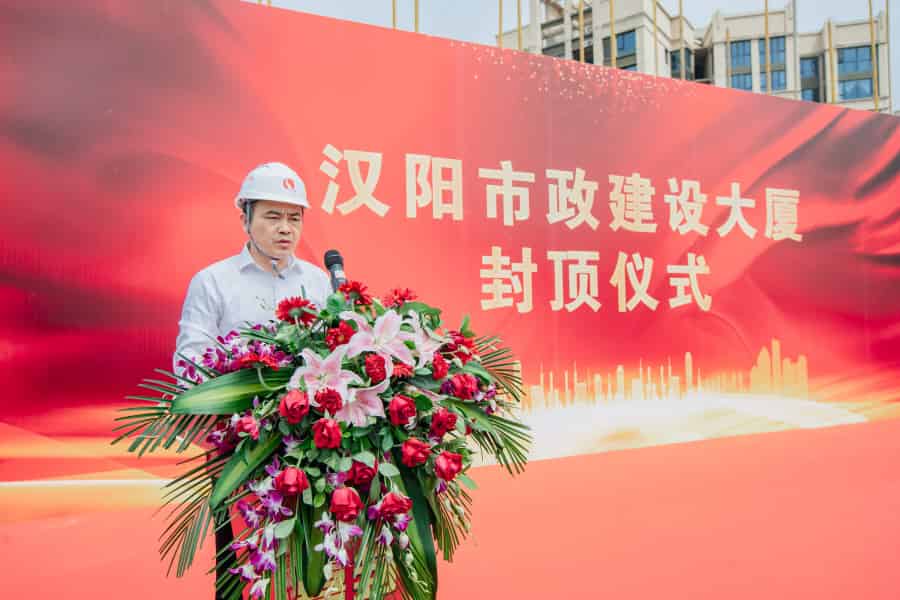 ? ? ? 漢陽市政黨委書記、董事長嚴悌文發表講話。嚴悌文代表漢陽市政對堅守一線的建設者們,對所有為漢陽市政建設大廈付出辛勞和汗水的同事們表達感謝和敬意,對項目封頂儀式的順利舉行表示祝賀。他強調,六十余載寒暑冬春,六十余載勵精圖治,從肩挑背扛到歸元老院,從泥濘小道到山遼海闊,漢陽市政人一直胸懷夢想,破浪前行。近年來,企業規模日益壯大,企業實力不斷攀升,漢陽市政建設大廈的建成將為公司的發展開啟更為嶄新的一頁。
