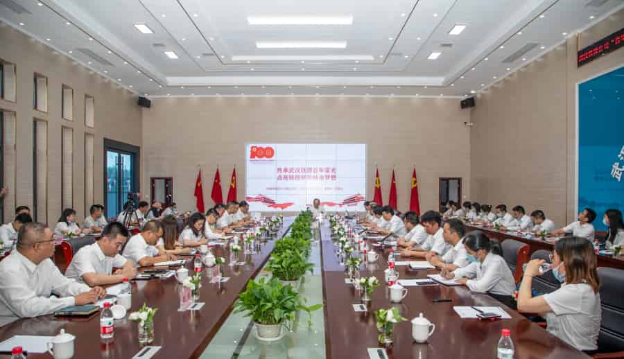 ? ? ? 在隨后舉行的“百年黨史·紅色傳承”主題黨課上,武漢市城投集團公司副總經(jīng)理、鐵投公司黨委書記、董事長汪國圣以“傳承武漢鐵路百年榮光,點亮鐵投賦能城市夢想”為主題,為大家講述了中國鐵路與武漢鐵路的發(fā)展史,講述了百年來武漢的“鐵軍精神”,汪國圣表示,武漢的每一次騰飛都與鐵路有關(guān),鐵軍精神永垂不朽,武漢鐵軍將“以臻心,鑄未來。”