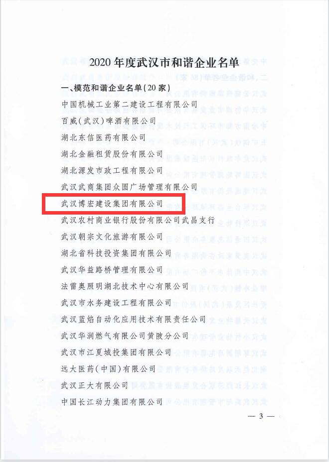 近日,根據(jù)2020年度武漢市和諧企業(yè)創(chuàng)建工作綜合考核情況,漢陽(yáng)市政博宏公司獲評(píng)“2020年度武漢市模范和諧企業(yè)”榮譽(yù)稱號(hào),琴臺(tái)公司獲評(píng)“2020年度武漢市和諧企業(yè)”榮譽(yù)稱號(hào)。此前,鐘鑫公司獲“2014年度武漢市和諧企業(yè)”,集團(tuán)公司獲“2016年度武漢市模范和諧企業(yè)”,致遠(yuǎn)公司獲“2017年度武漢市模范和諧企業(yè)”,天創(chuàng)公司獲“2019年度武漢市模范和諧企業(yè)”,五公司獲“2019年度武漢市和諧企業(yè)”。截至目前,漢陽(yáng)市政已有7家單位獲評(píng)“武漢市模范和諧企業(yè)”和“武漢市和諧企業(yè)”。