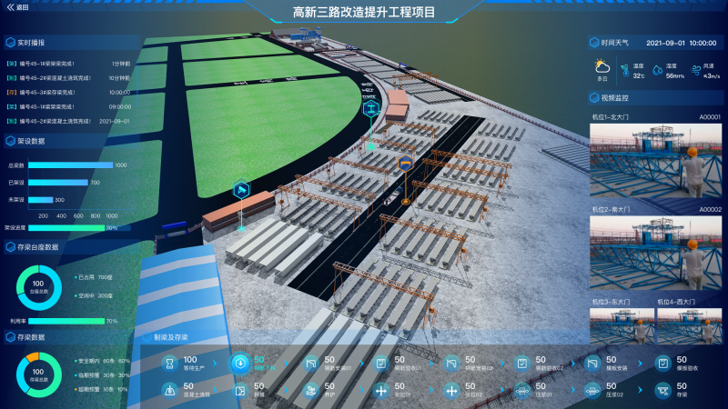 項(xiàng)目以“人工智能應(yīng)用”為主,以“大數(shù)據(jù)智能化”為引領(lǐng),構(gòu)建“智慧交通、智慧橋梁、智慧水務(wù)、智慧管網(wǎng)、智慧路燈”五大智慧工程。項(xiàng)目以BIM+GIS技術(shù)打造的高精度數(shù)字模型為依托,采用預(yù)制裝配式連續(xù)結(jié)構(gòu)及智能機(jī)械化設(shè)備,讓智慧建造推動項(xiàng)目建設(shè)智能、高效。項(xiàng)目創(chuàng)新應(yīng)用“項(xiàng)目協(xié)同管理平臺”、“智慧梁場系統(tǒng)”,延伸“項(xiàng)目信息化辦公平臺”,打造工地智慧運(yùn)維大腦。