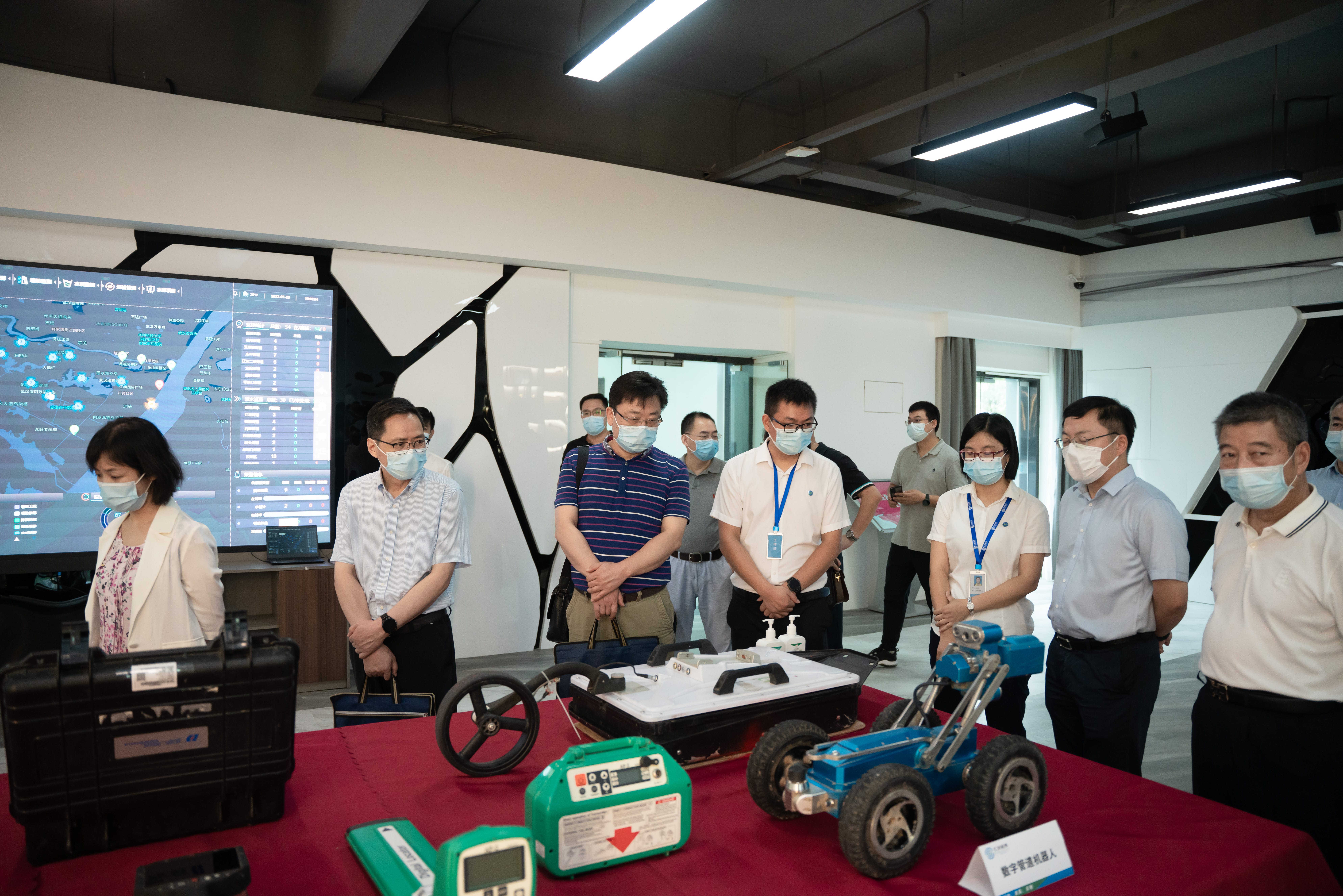 調(diào)研組一行首先參觀了檢測(cè)公司的實(shí)驗(yàn)區(qū),在講解員的介紹下了解了道路綜合檢測(cè)車(chē)、三維雷達(dá)探測(cè)車(chē)以及落錘車(chē)的基本工作原理。隨后,調(diào)研組體驗(yàn)了房屋巡查體感操作系統(tǒng),近距離參觀了數(shù)字管道機(jī)器人、TZ12全站儀、經(jīng)緯 M300 RTK、禪思P1等一批高新設(shè)備。漢陽(yáng)市政檢測(cè)公司始終聚焦智能化檢測(cè),大力引進(jìn)核心技術(shù)和高新人才,擁有一大批先進(jìn)的檢測(cè)設(shè)施和完備的資質(zhì)參數(shù)。十四五以來(lái),堅(jiān)定不移地貫徹落實(shí)十四五規(guī)劃精神,將提質(zhì)增效作為企業(yè)發(fā)展首要目標(biāo),在今年還取得了湖北省“專(zhuān)精特新”企業(yè)稱(chēng)號(hào)。