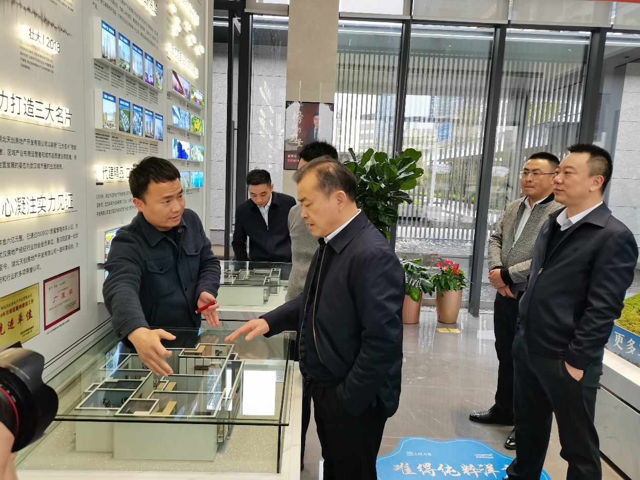 ? ? ? ? 3月21日,漢陽(yáng)城建黨委書記、董事長(zhǎng)嚴(yán)悌文一行蒞臨宜昌天創(chuàng)·攬?jiān)赂疤靹?chuàng)·望江樾項(xiàng)目現(xiàn)場(chǎng),檢查項(xiàng)目建設(shè)、營(yíng)銷等工作進(jìn)展情況。漢陽(yáng)市政集團(tuán)總經(jīng)理王智高,集團(tuán)常務(wù)副總經(jīng)理、天創(chuàng)地產(chǎn)董事長(zhǎng)錢濤,集團(tuán)總經(jīng)理助理彭駿;博宏建設(shè)董事長(zhǎng)鄒勇,黨委副書記郭一清;天創(chuàng)地產(chǎn)副總經(jīng)理陳偉等陪同檢查。