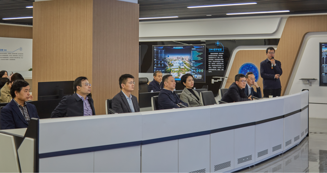 陳勁超一行來到漢陽市政建設大廈,參觀漢陽市政數智化管理中心,聽取了漢陽區(qū)城市數字公共基礎設施建設情況的匯報,并就漢陽區(qū)城市信息模型(CIM)平臺項目的建設及運營情況進行現(xiàn)場交流。