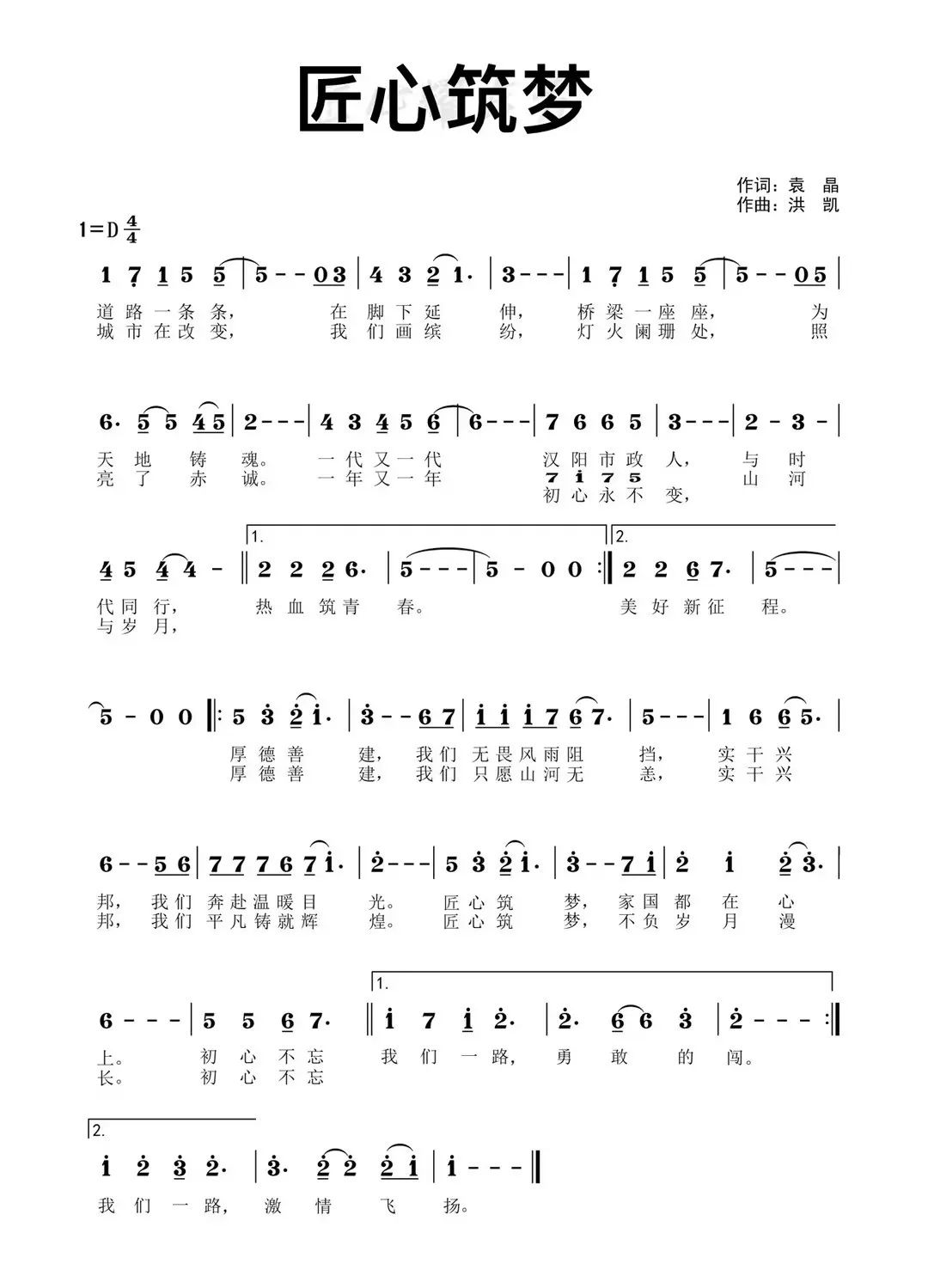 ? ?《匠心筑夢》由袁晶作詞,洪凱作曲,節奏鏗鏘有力、雄壯昂揚,氣勢熱情澎湃、朝氣蓬勃。司歌承載著漢陽市政人為國為民盡心盡責的不變初心,唱響了新一代漢陽市政青年不負歲月用熱血繪就美好藍圖的壯志豪情。