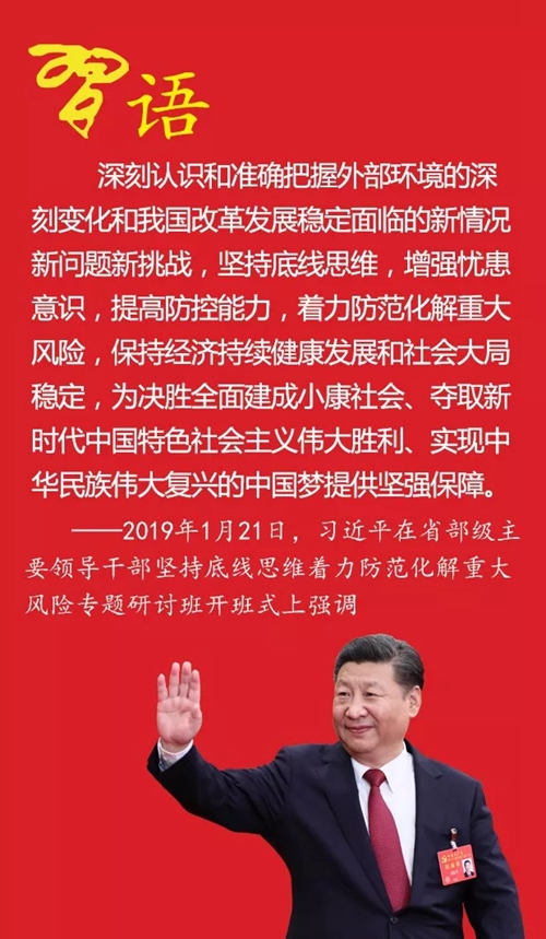 ——2019年1月21日,習近平在省部級主要領導干部堅持底線思維著力防范化解重大風險專題研討班開班式上強調(diào)