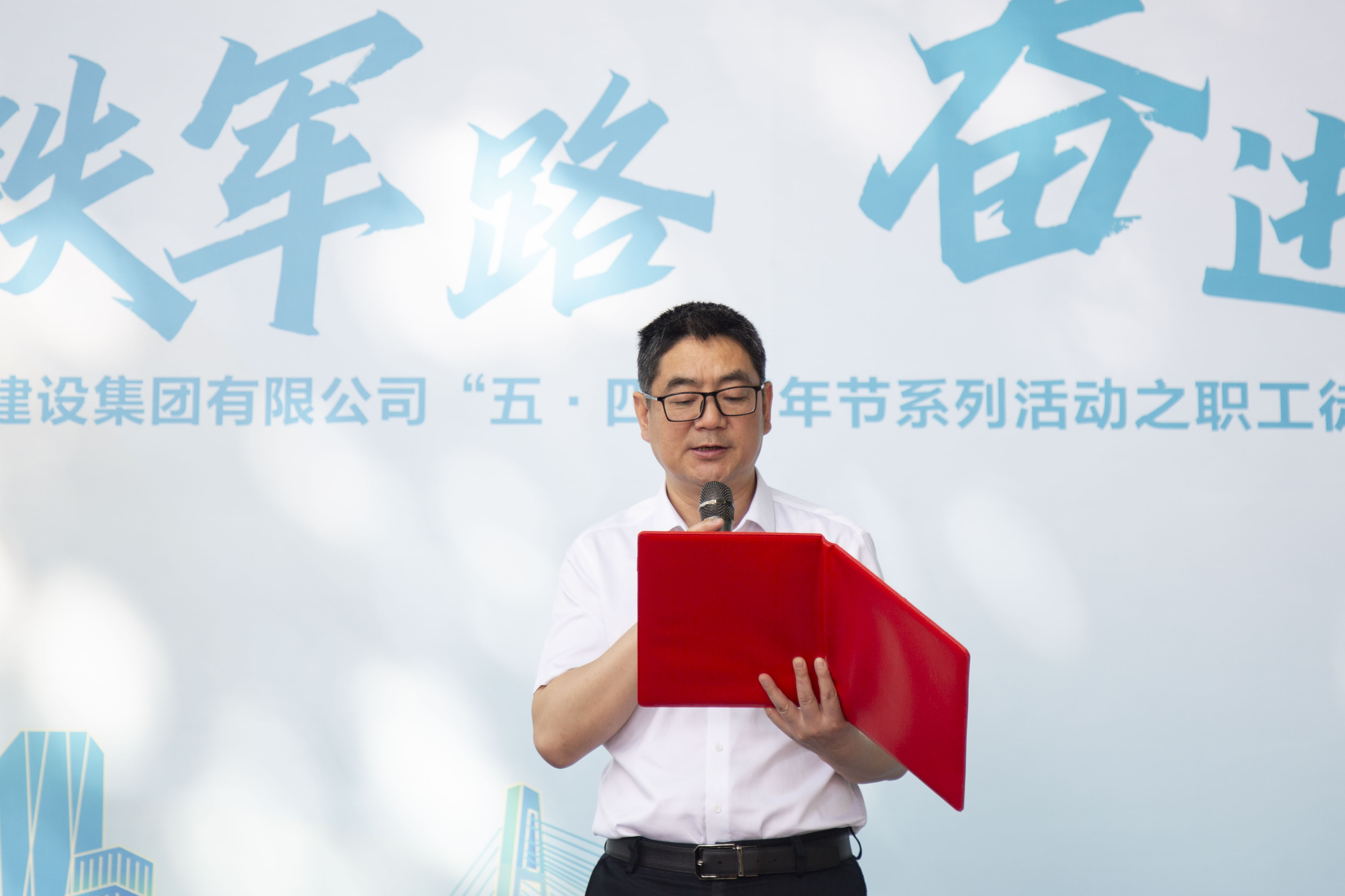 漢陽市政博宏建設(shè)黨委書記、董事長兼總經(jīng)理鄒勇,代表勞動(dòng)競(jìng)賽參賽單位表態(tài)發(fā)言。